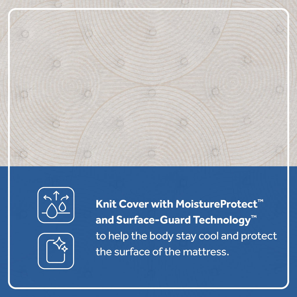 • Cool and Comfortable Cover: A durable, soft knit-fabric cover with moisture-wicking MoistureProtect™ helps the body stay cool and comfortable, and Surface-Guard Technology™ protects the mattress surface from odors and staining caused by bacteria and common allergens.